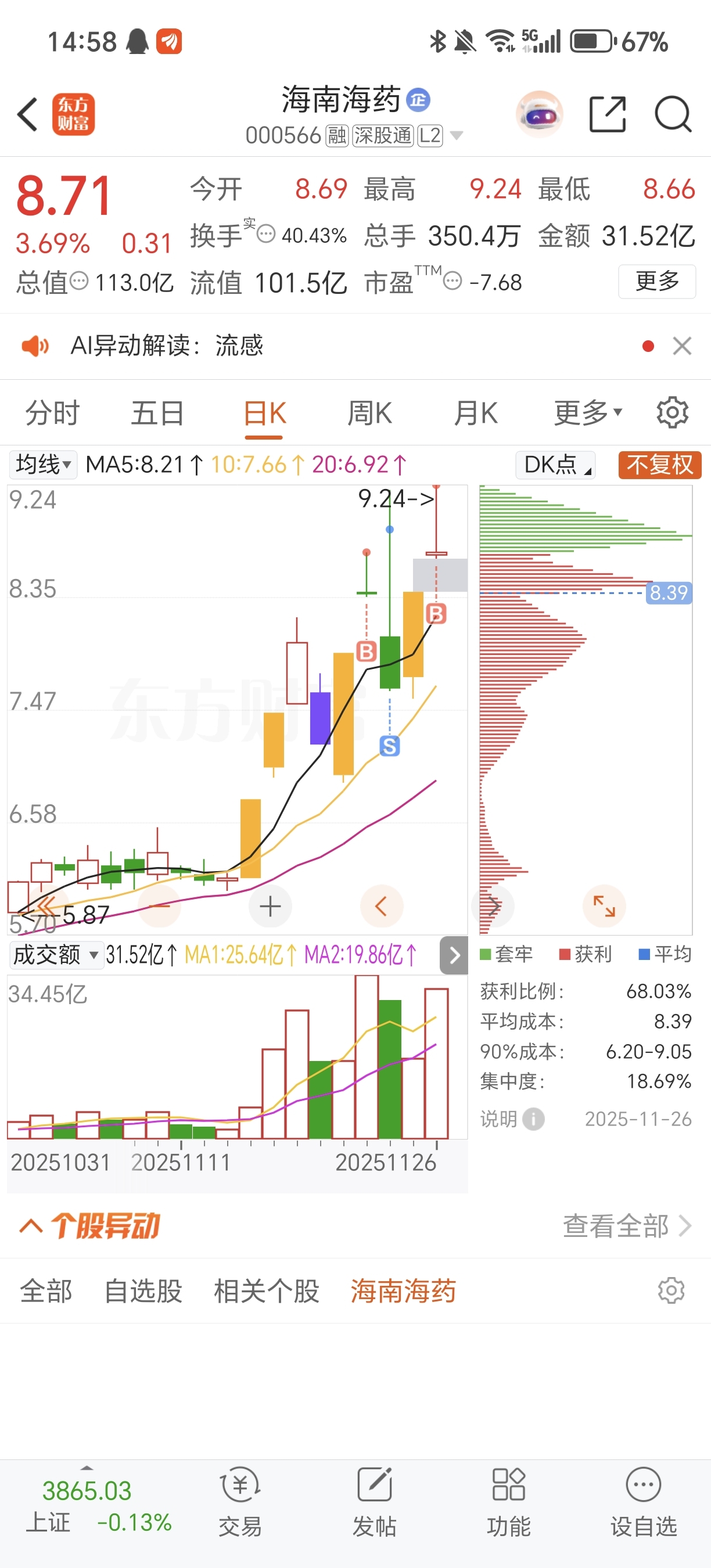 $海南海药(SZ000566)$ 天天上香,无敌了海药