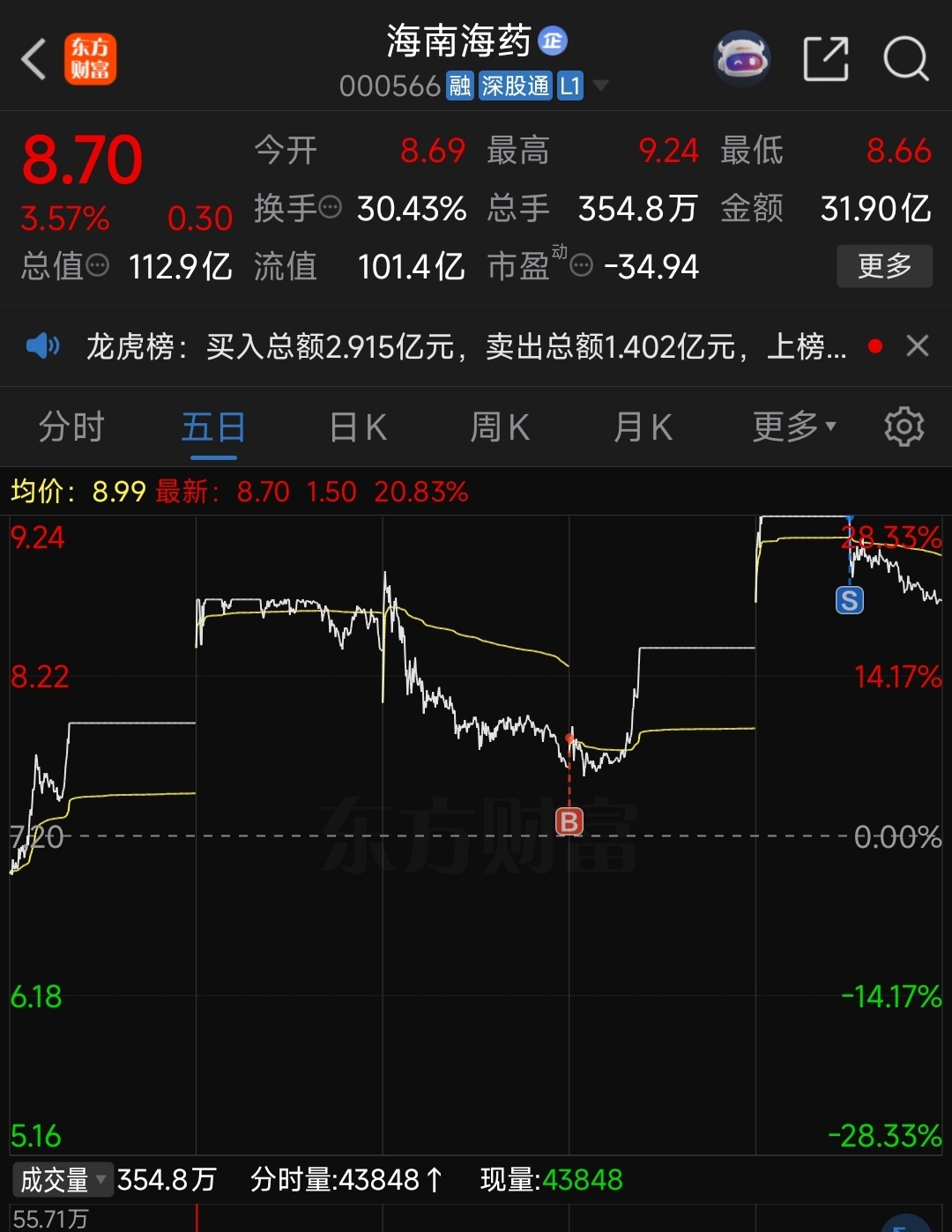 $海南海药(SZ000566)$ 海南,医药,双buff叠加赶不过瑞泽,还还要开板。
