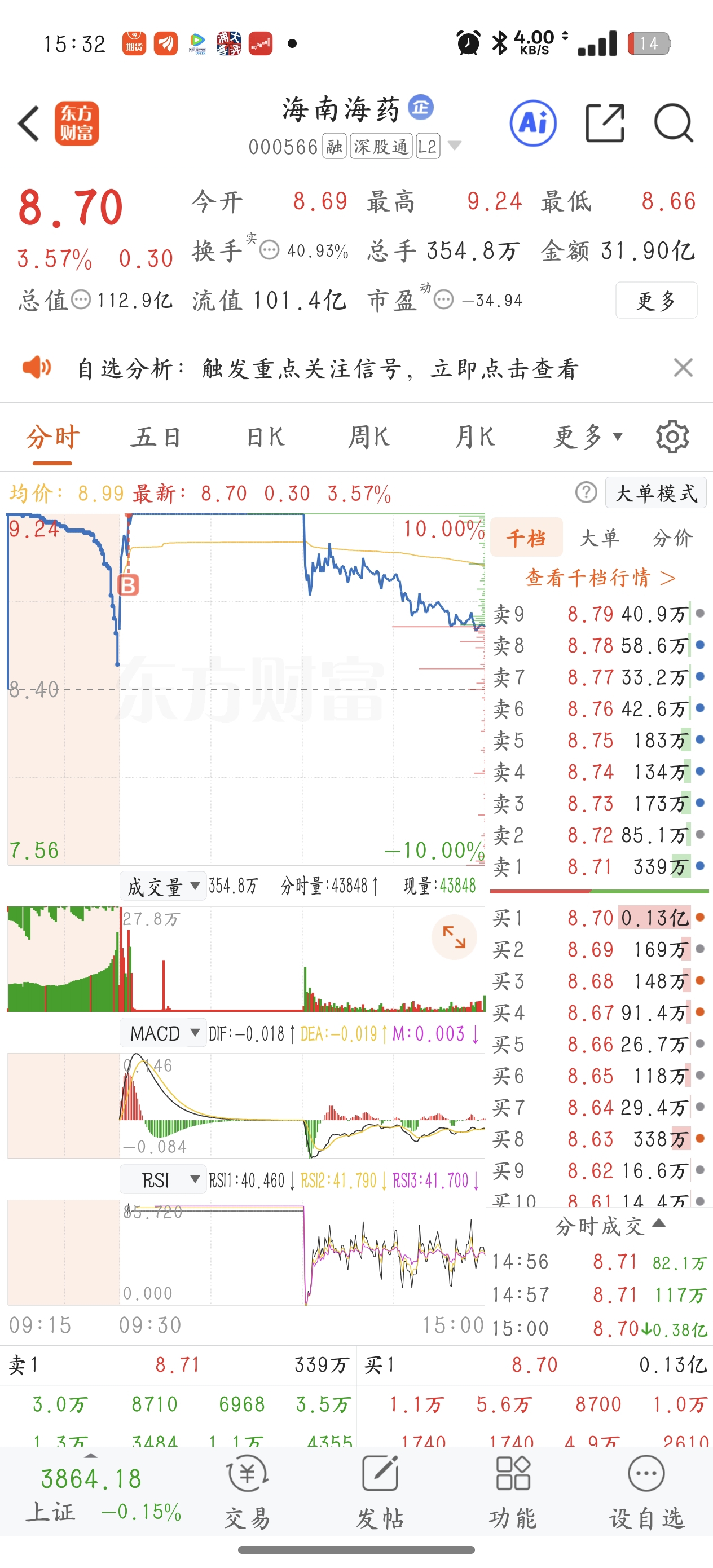 $海南海药(SZ000566)$ 扶我起来,我要写个大大的惨字
