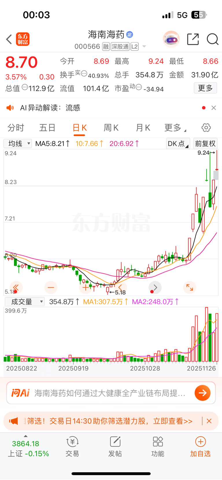 $海南海药(SZ000566)$ 突然发现还有走势这么恶心的票,连板接力逻辑在这里毫无作用,这是谁来接力杀谁么?