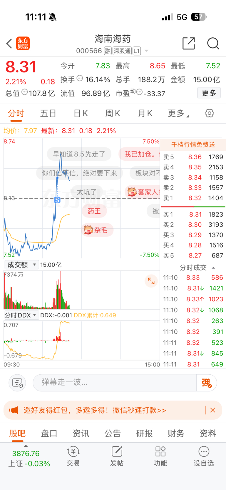$海南海药(SZ000566)$ 谢谢主力饶我一条狗命,早上亏7个点的时候真的想死