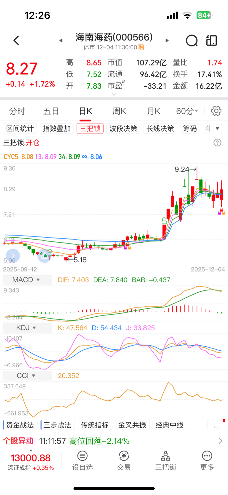 $海南海药(SZ000566)$ 三把锁来了!今天开仓