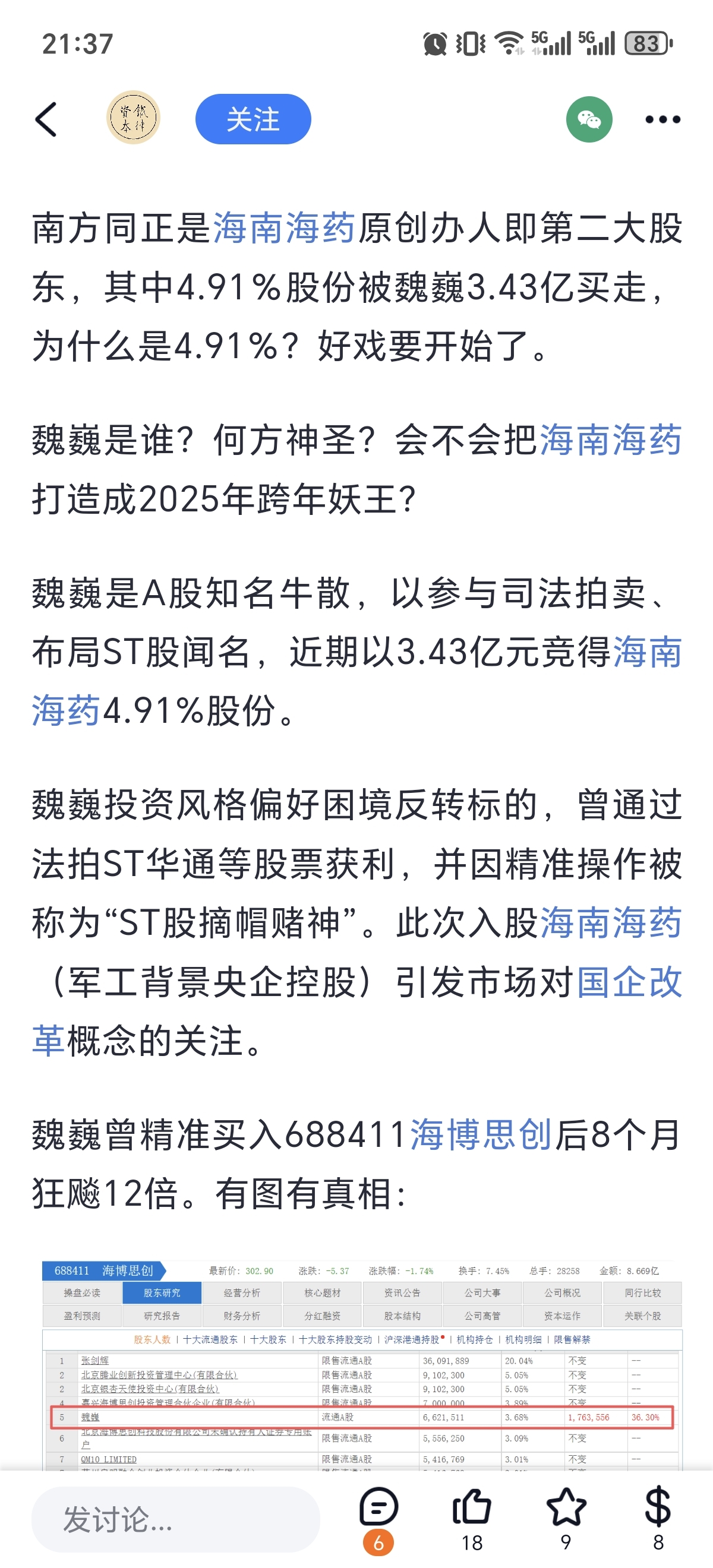$海南海药(SZ000566)$ 这魏巍到底是何方神圣?专门搞股权拍卖! 杉杉股份世纪华通华创云信中矿资源一堆股权拍卖的都买了!而且拍到的股票走得全部是趋势!比什么章盟主/陈小群/92科比短线客强太多了吧!
