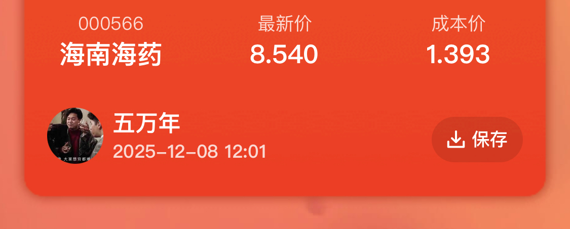 $海南海药(SZ000566)$ 我的成本价还可以吧