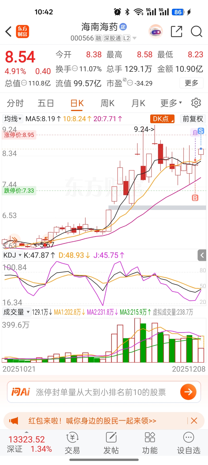 $海南海药(SZ000566)$ 虽然我先出来了,但是感觉后面还是会涨。