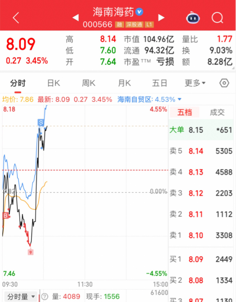 $海南海药(SZ000566)$ 舒服了,150手收工
