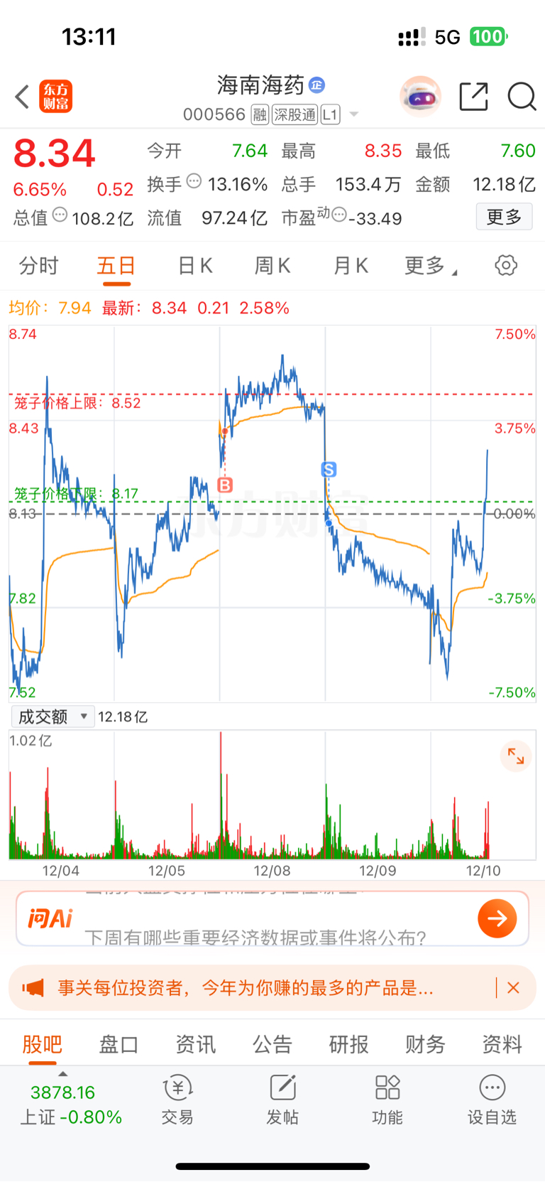 $海南海药(SZ000566)$ 昨天卖了你和欣龙……今天两个冲涨停
