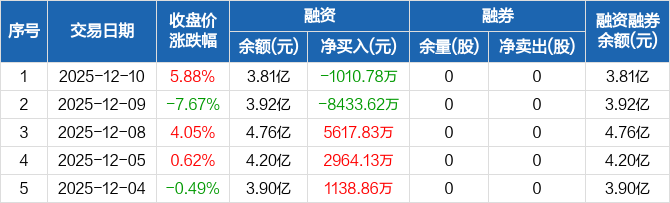 海南海药:融资净偿还1010.78万元,融资余额3.81亿元(12-10)