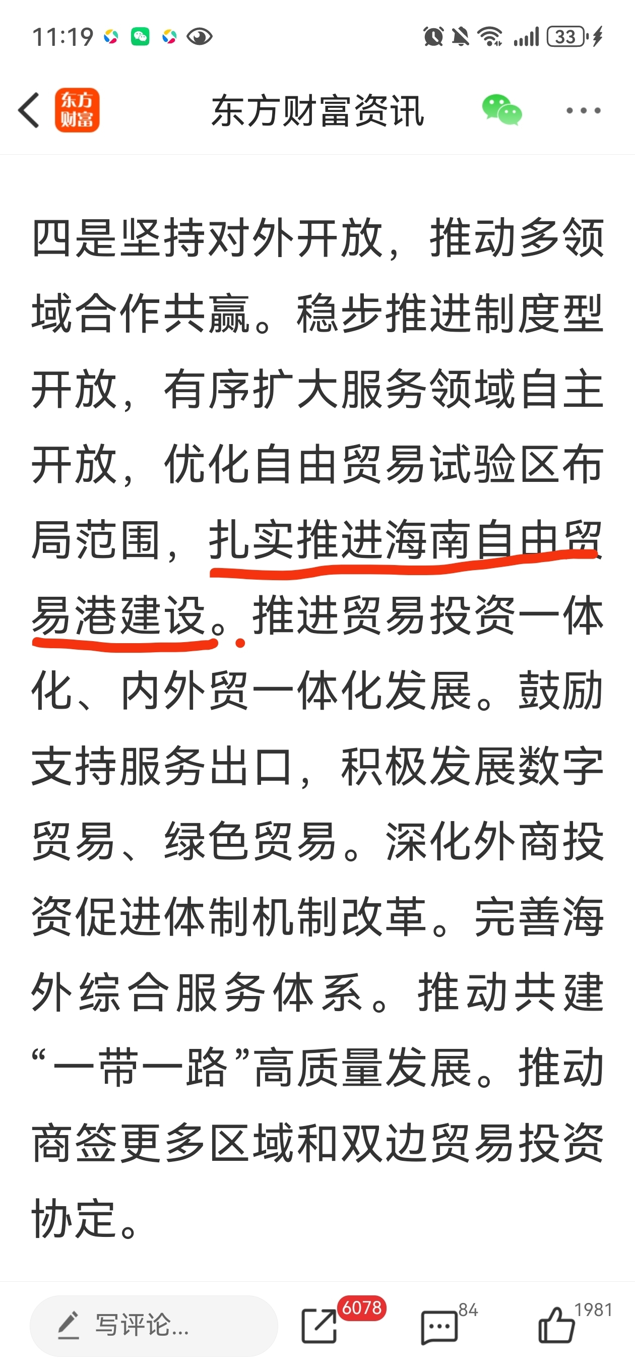 $海南海药(SZ000566)$ 中央经济会议出利好了,海南自贸区