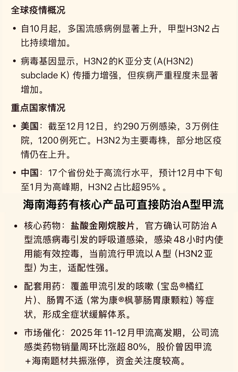 截至2025年12月14日,全球流感形势严峻,甲型H3N2“亚分支K”病毒成为主要威胁。根据世界卫生组织及各国最新通报,全球流感活动近期显著增加,主要由甲型流感病毒主导,尤其是H3N2亚型。以下是关键信息: