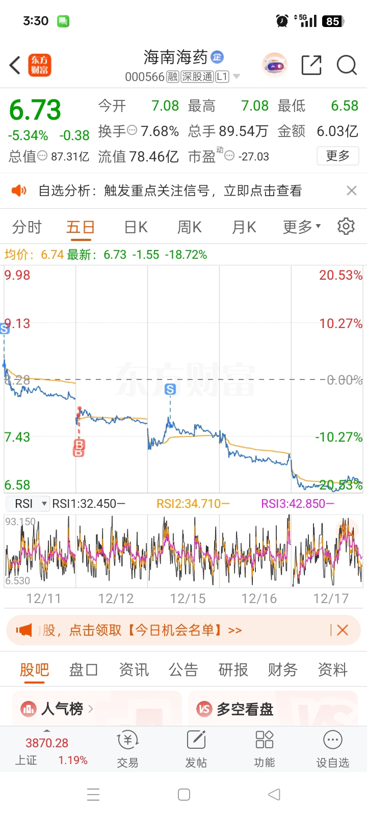 $海南海药(SZ000566)$ 不要叫了,我8.3的本都割了,你们就省点力气吧!