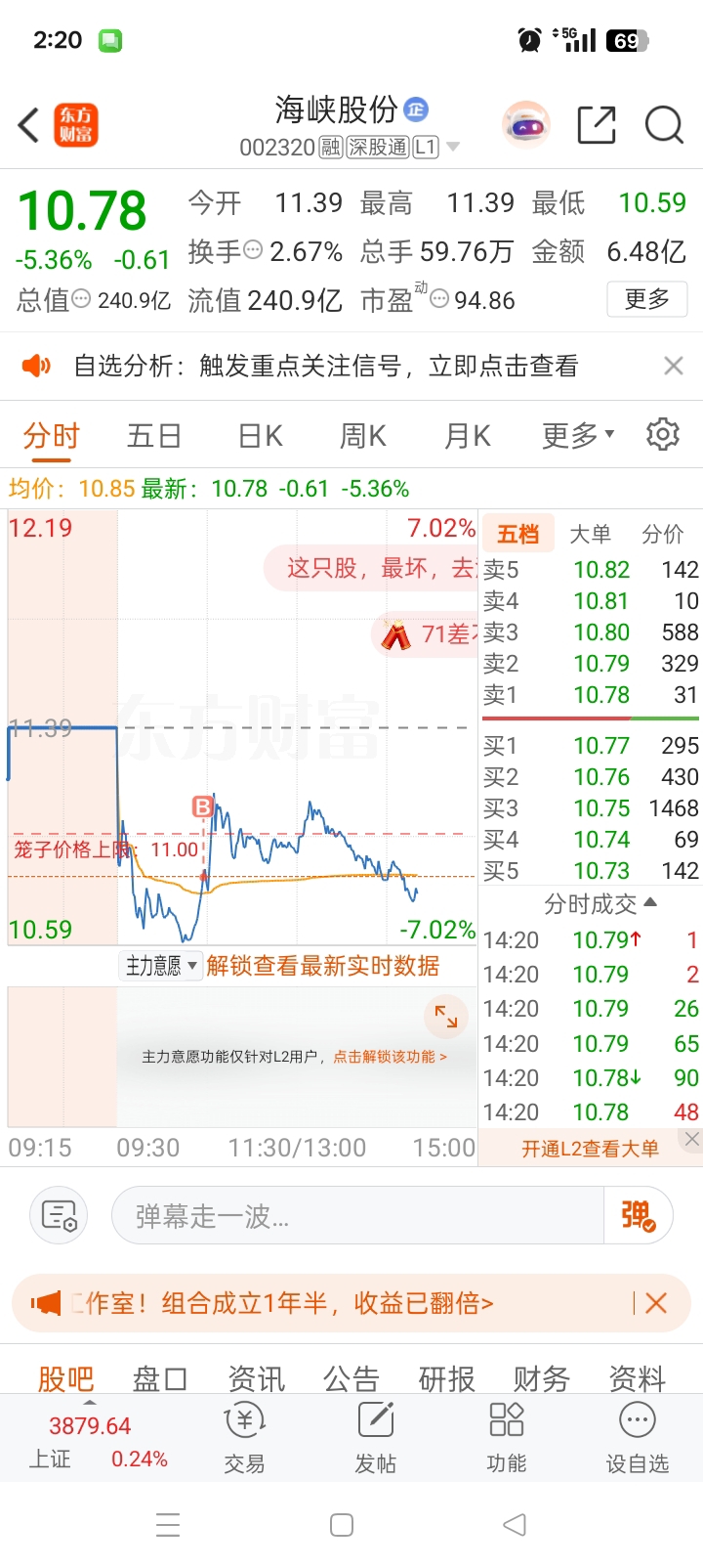 今天10.84买,拉到11.15,下午直接按在地上摩擦