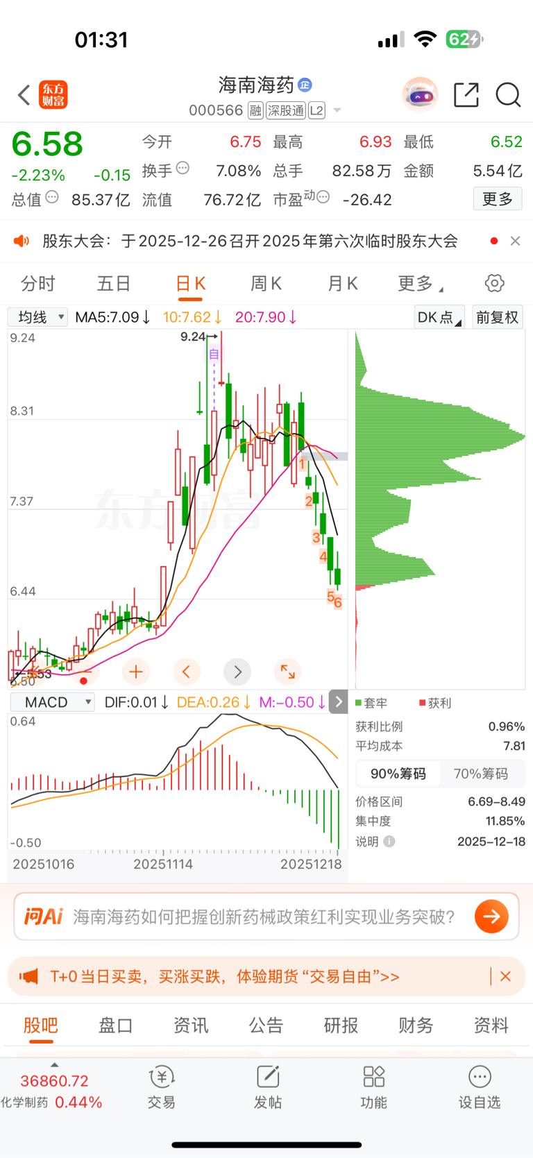 $海南海药(SZ000566)$ 多看多学习,就算错过大涨也是一种学习财富