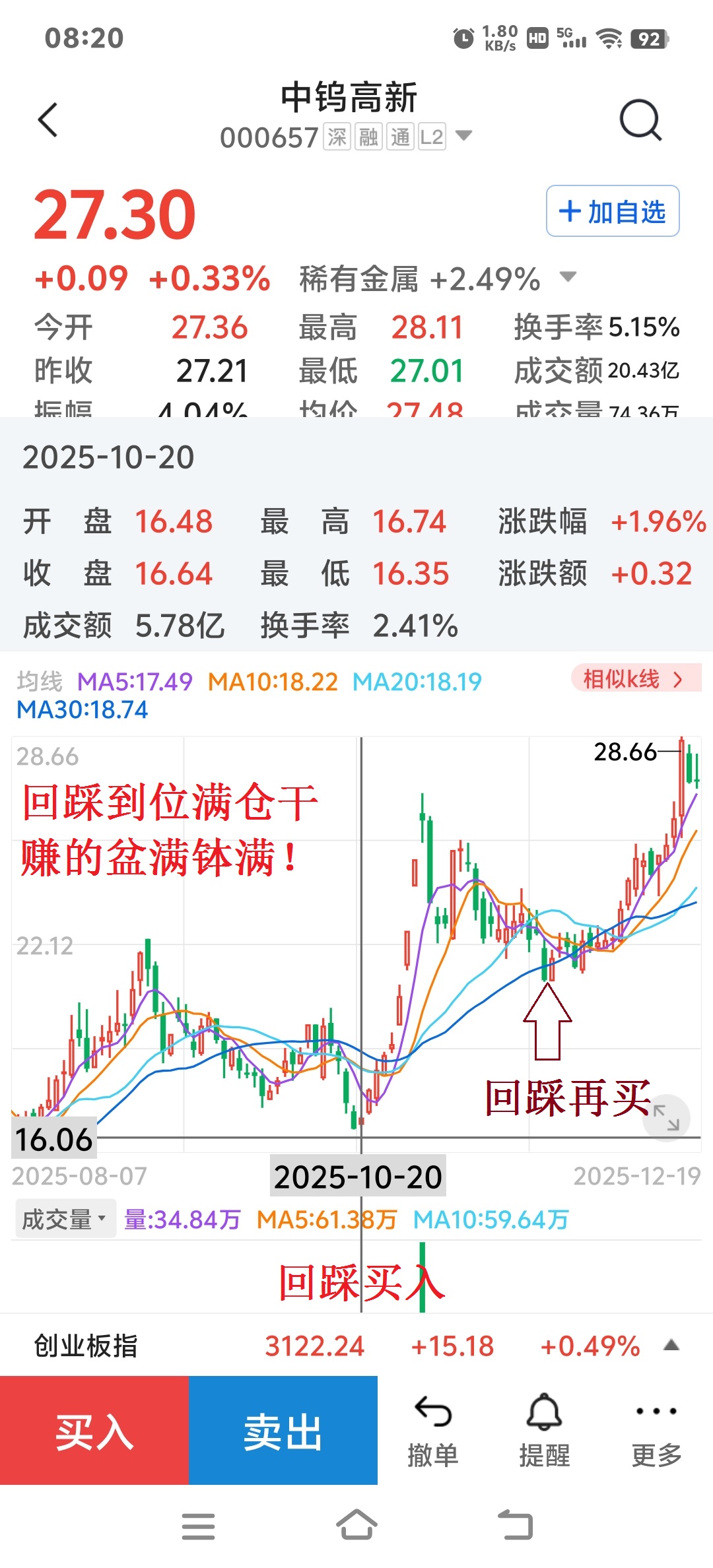 模拟了一下K线图形:本周内见到10.59元概率极高!参照中钨高新的回踩到位模式,