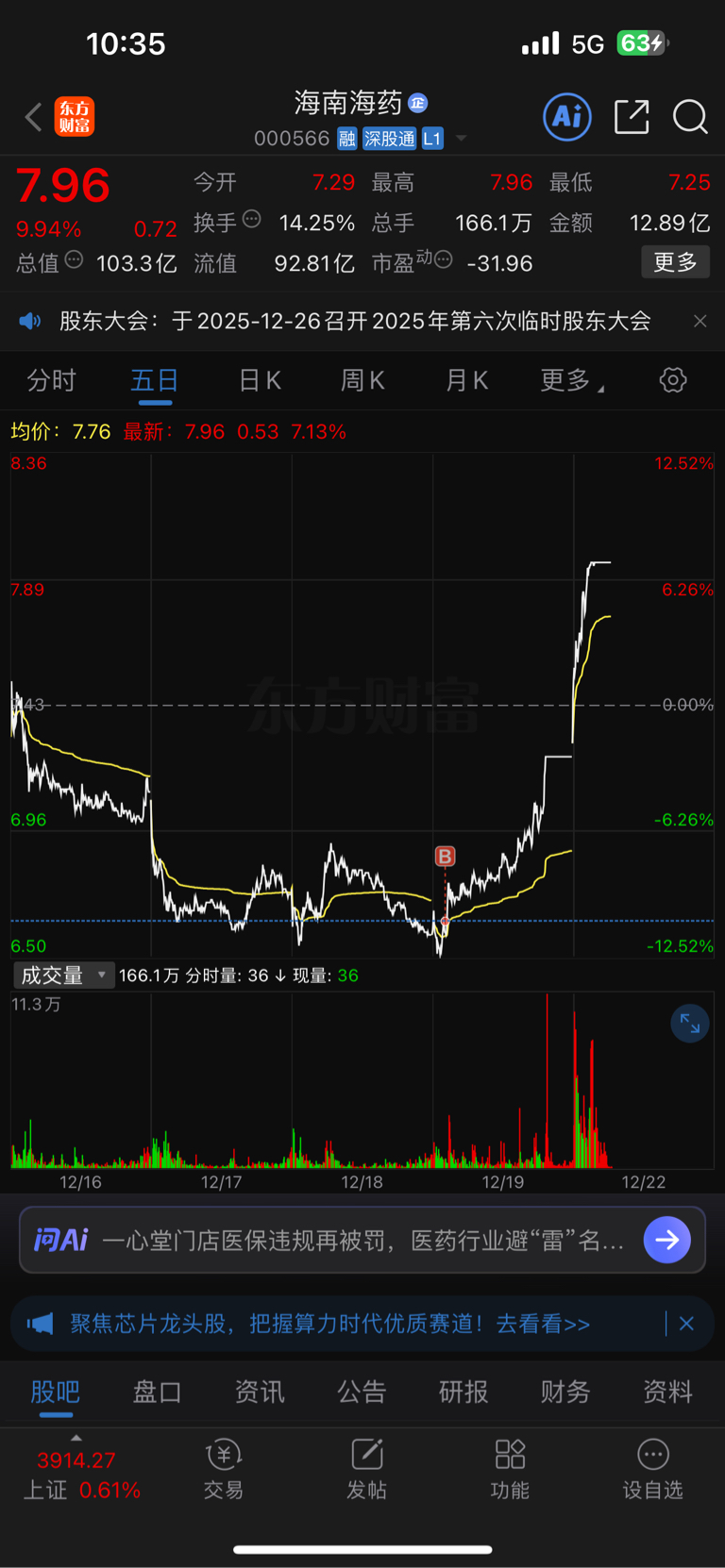 $海南海药(SZ000566)$ 这运气还算可以,进的刚刚好