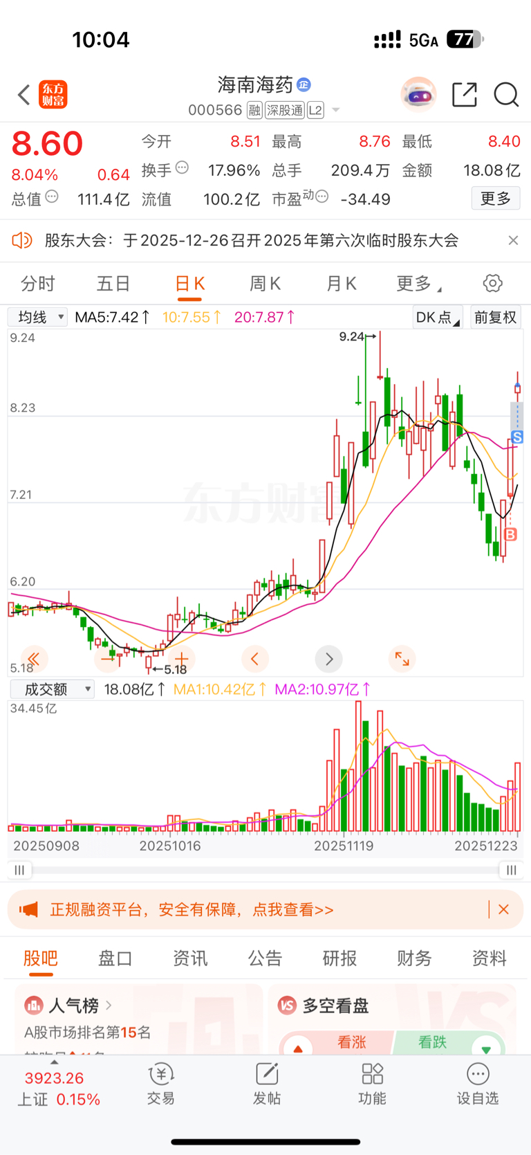 $海南海药(SZ000566)$ 感谢感谢,17点,