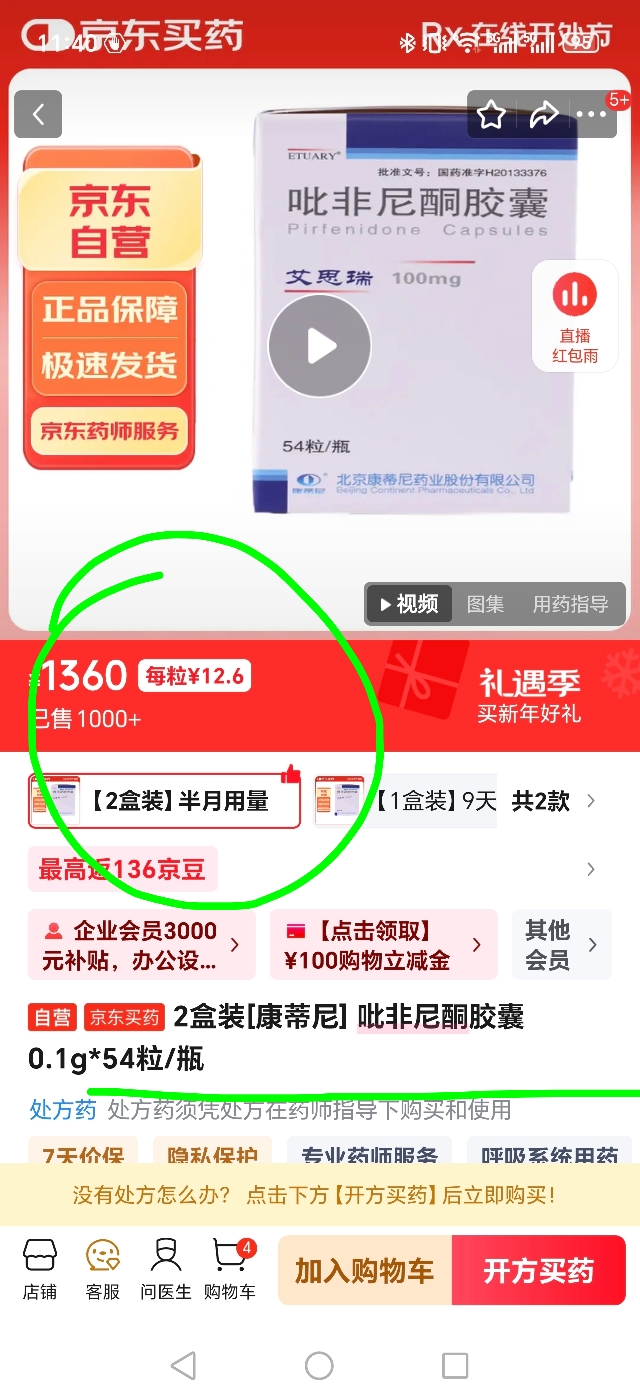 定价参照吡非尼酮,目前吡非尼酮月治疗费用在2000-3000,终身用药。