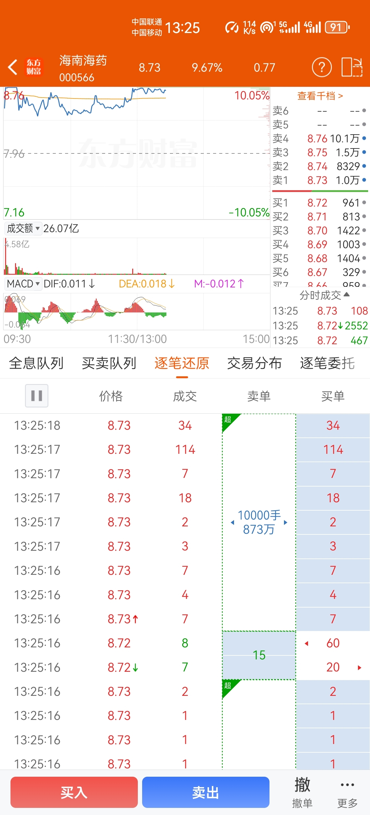 $海南海药(SZ000566)$ 别进了,1w手大单猛猛砸。