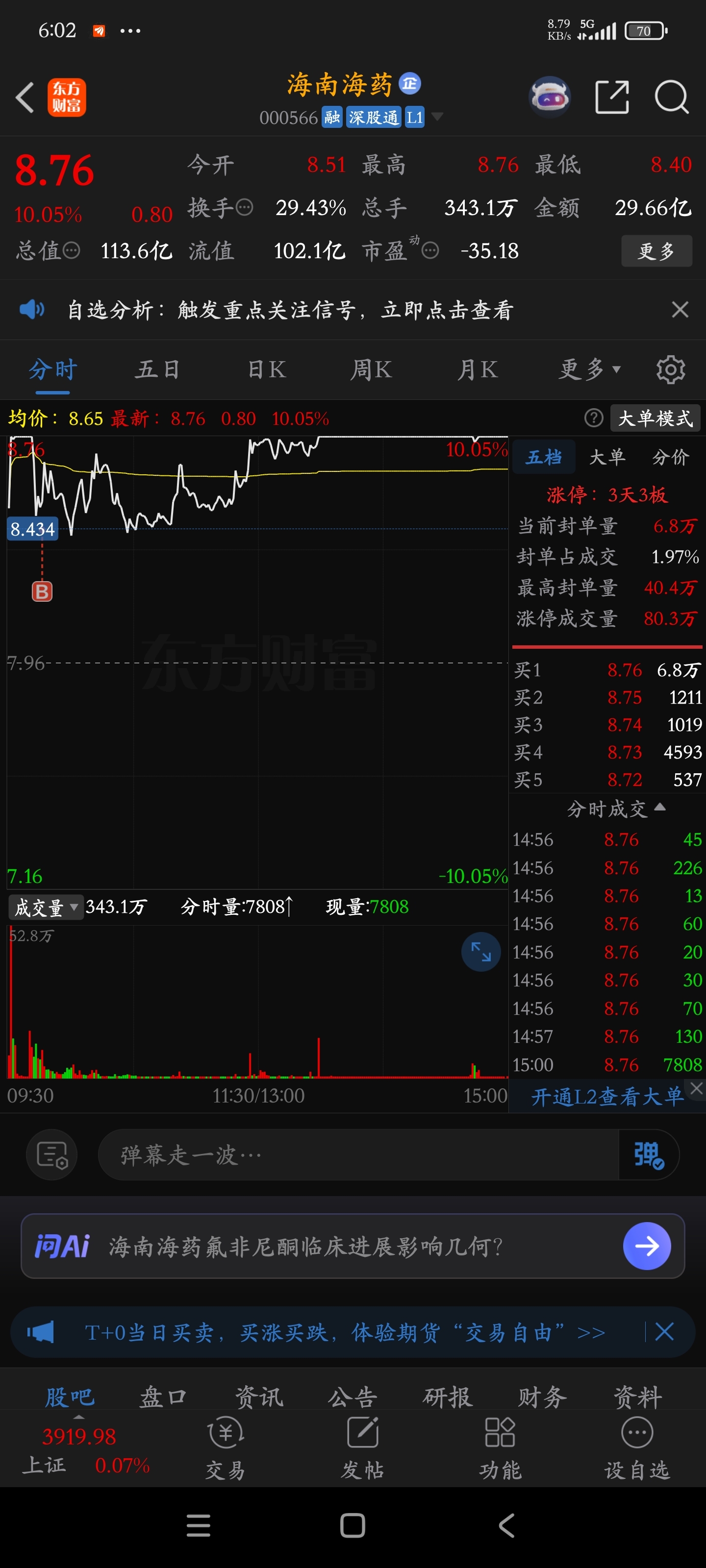 $海南海药(SZ000566)$ 希望明天有肉吃