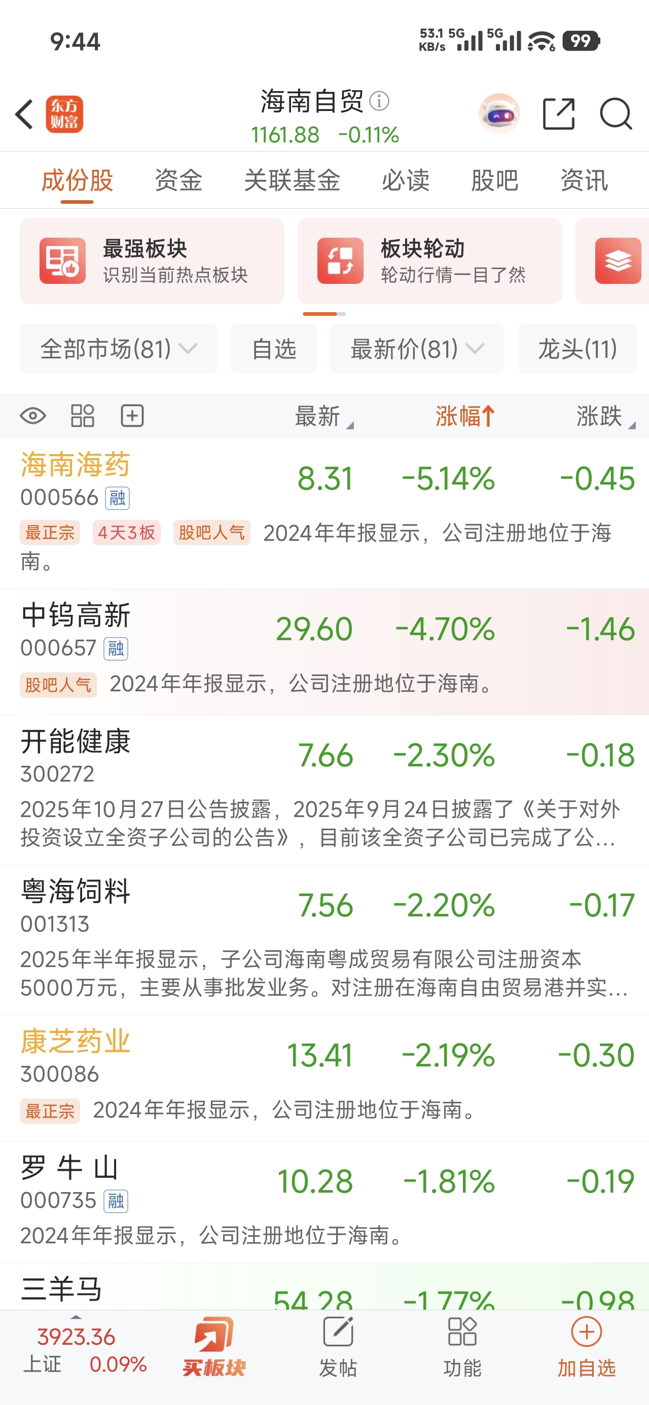 $海南海药(SZ000566)$ 板块倒数第一
