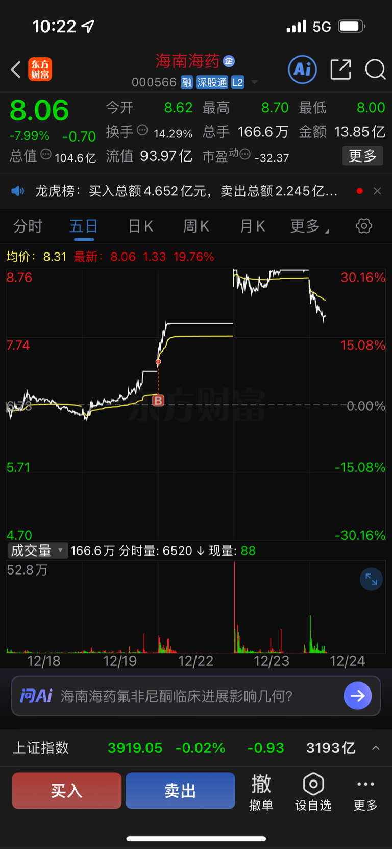 $海南海药(SZ000566)$ 你敢砸 我就敢格局