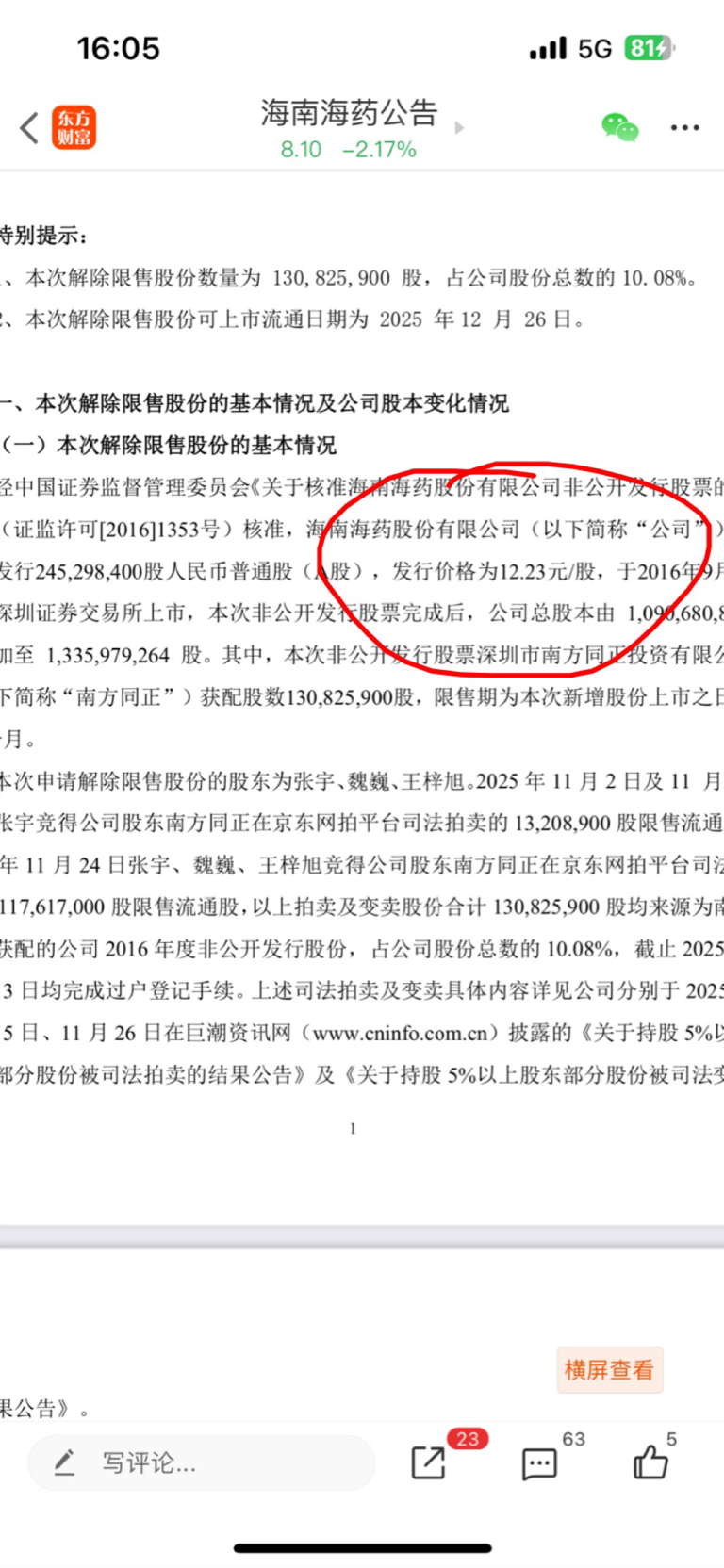 $海南海药(SZ000566)$ 解禁解个毛,综合11.92的成本,现价才8.1,有啥可苦恼的,无非是心里微颤一下而已,呵呵