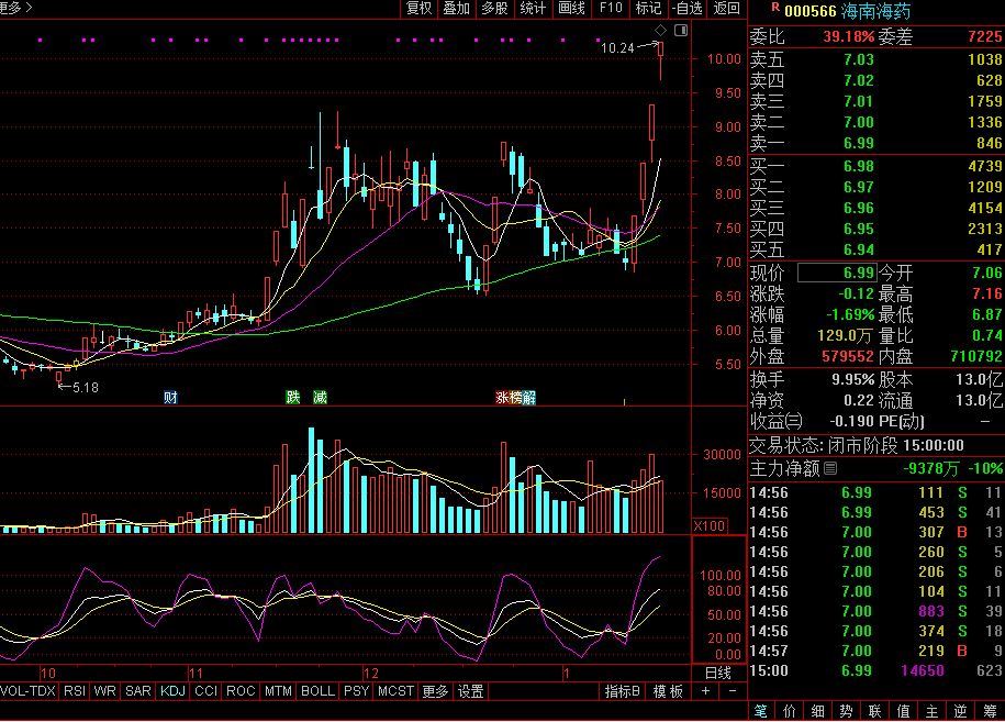 海南海药6.99元收盘寓意留的久久:没有被洗掉的人将会获得重大收益......