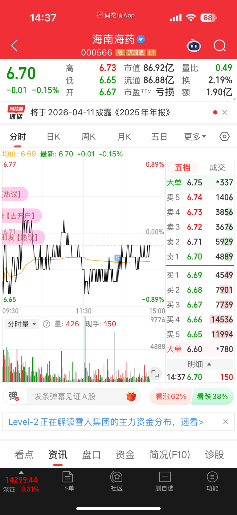 $海南海药(SZ000566)$ 留下的发财