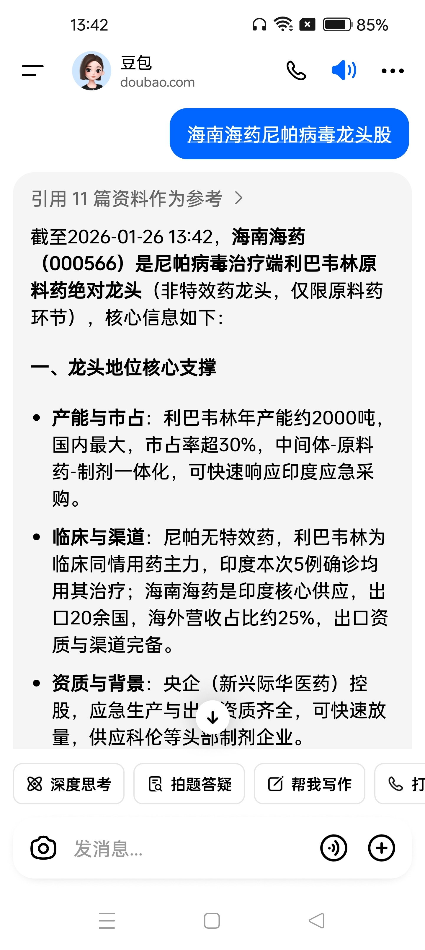 $海南海药(SZ000566)$ 海南海药尼帕病毒正宗龙头股。