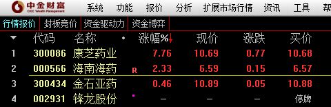 锋龙股份关小黑屋之后康芝药业带动海南海药和金石亚药翻红。