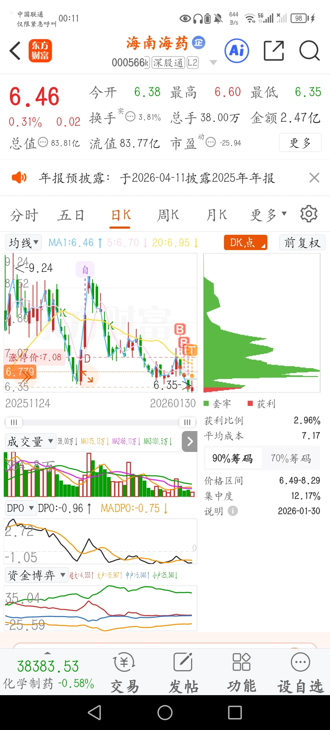 $海南海药(SZ000566)$ 从9元跌到6元,跌幅50个点,我已经重仓!静待花开!