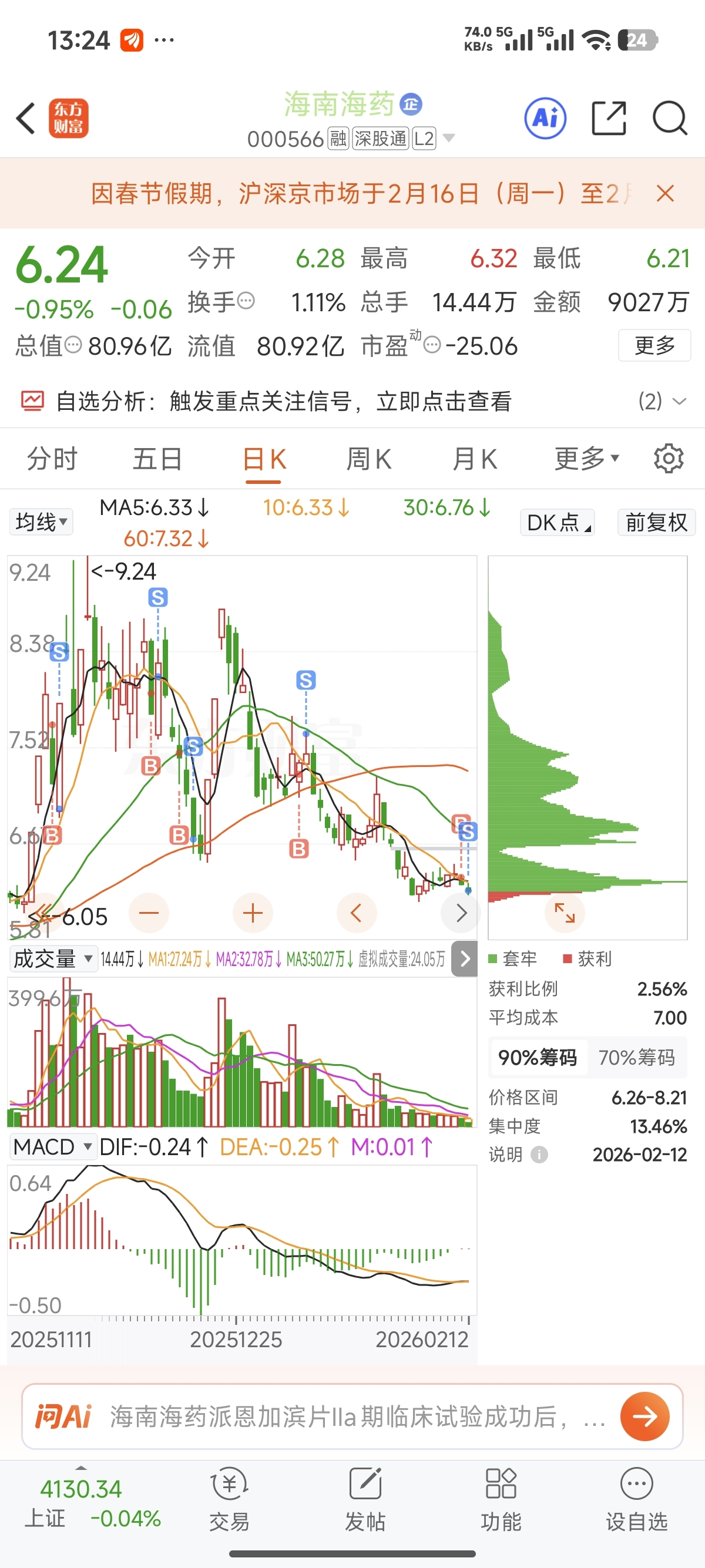 $海南海药(SZ000566)$ 每次都因为情绪买这个狗票,等过完年我再来干,!!