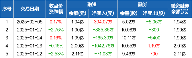 海德股份:融资净买入394.07万元,融资余额1.94亿元(02-05)