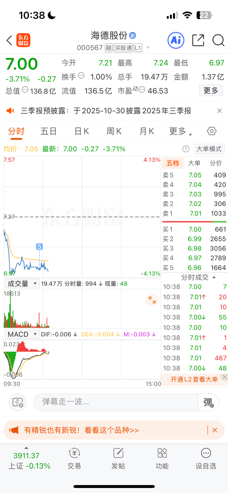 $海德股份(SZ000567)$ 没有刀套撤了