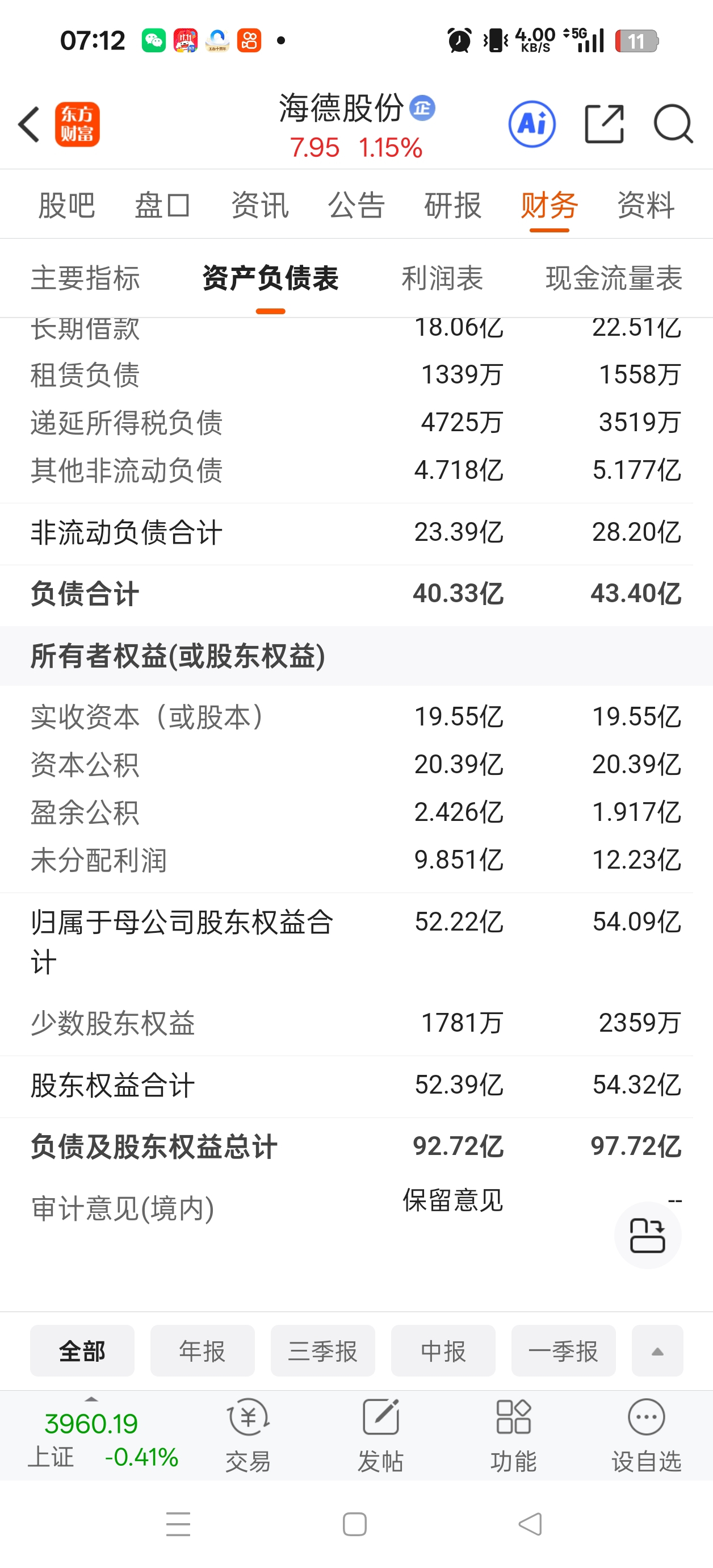 $海德股份(SZ000567)$ 去年年报时保留意见的都要小心点,轻仓玩一下,不要重仓,掉坑里一次可能就爬不出来了