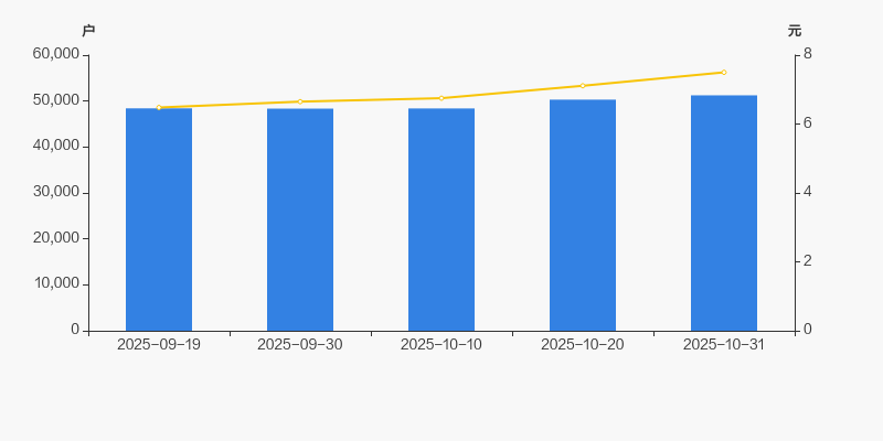 自2025年9月30日以来,公司股东户数连续3期上涨,截至目前增幅为5.99%。2025年9月30日至2025年10月31日区间股价上涨12.78%。