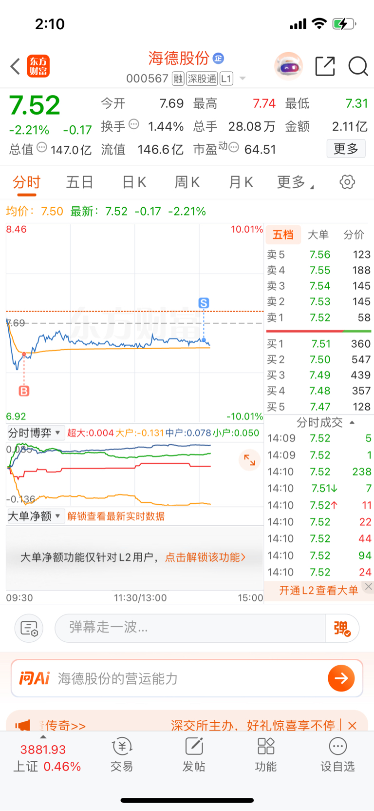 $海德股份(SZ000567)$ 老子又做T了酒菜们
