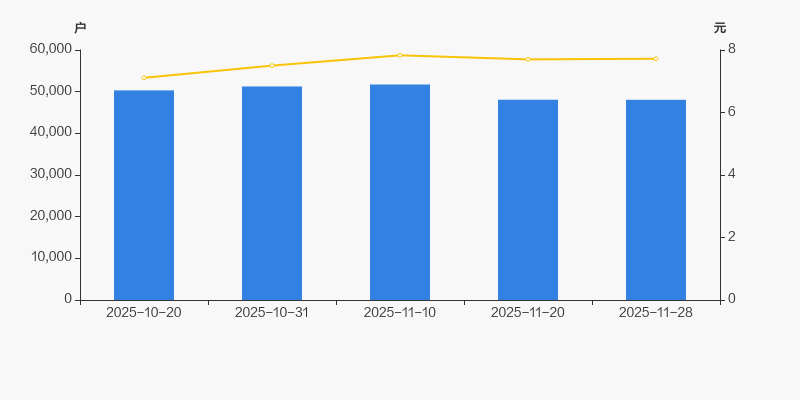 2025年10月20日至今,公司股东户数有所下降,区间跌幅为4.51%。2025年10月20日至2025年11月28日区间股价上涨8.58%。