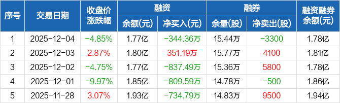 海德股份:融资净偿还344.36万元,融资余额1.77亿元(12-04)