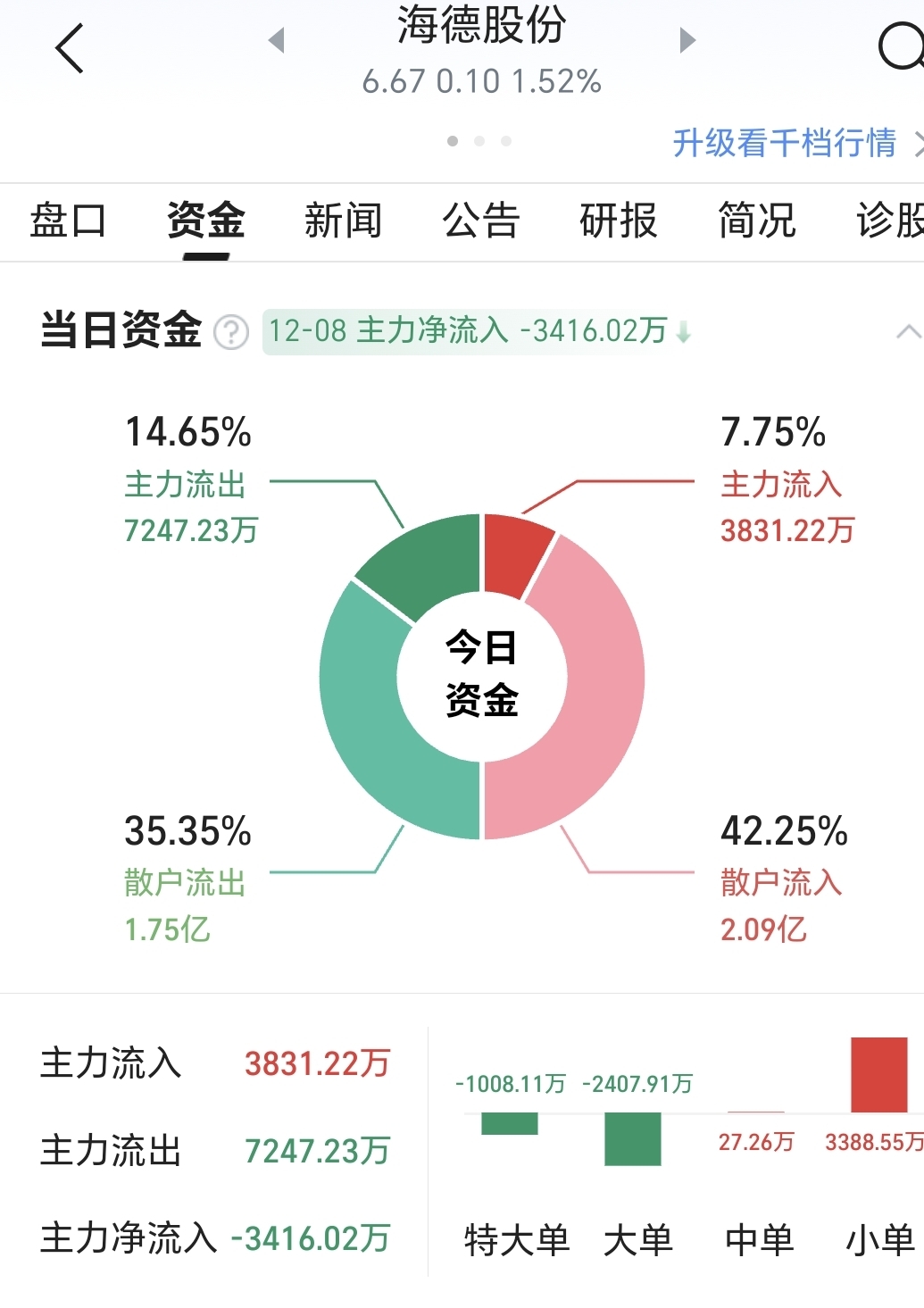 $海德股份(SZ000567)$ 出逃这么大的资金量,让这么多散户接盘,涨了几分钱却出逃了这么大的资金量,说明前面的坑无法估量了!