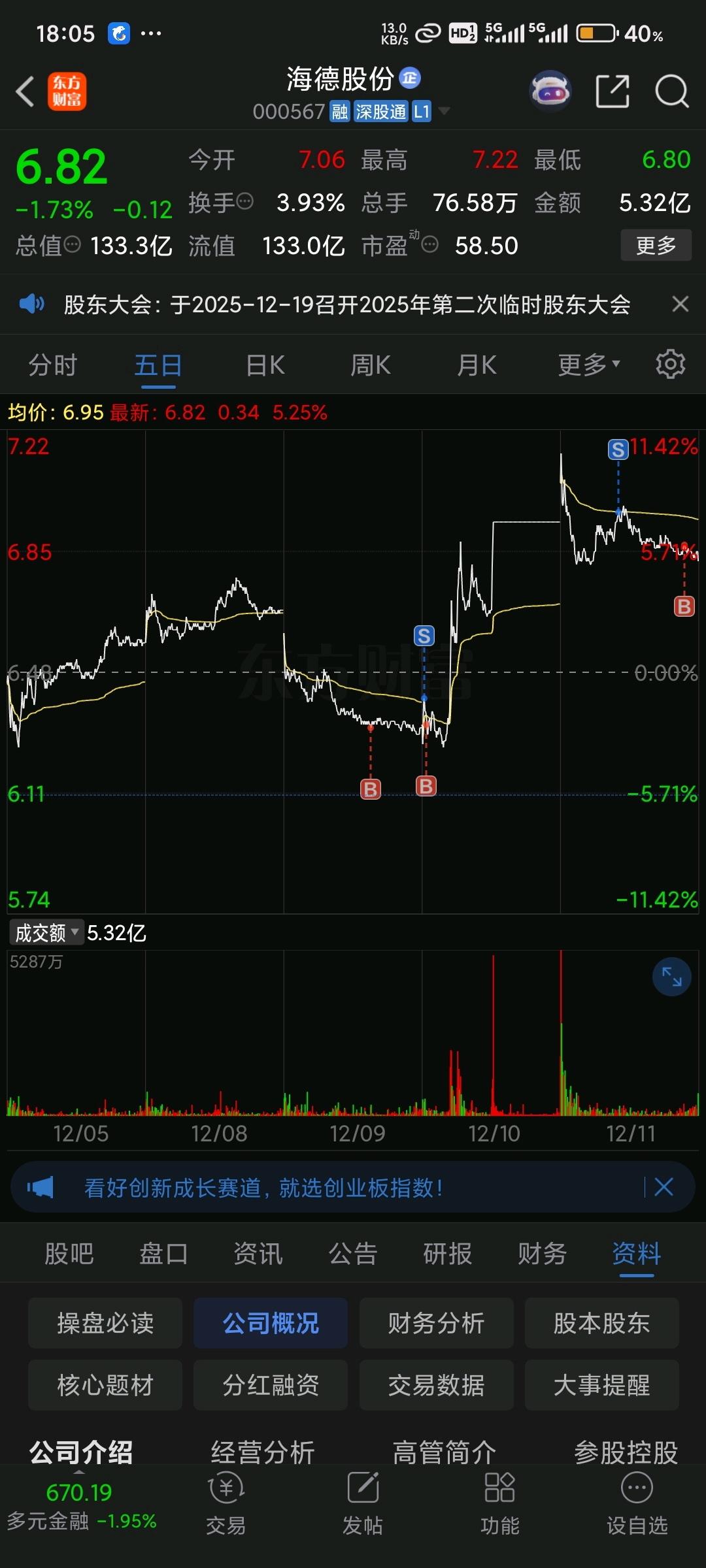 $海德股份(SZ000567)$ 涨的时候多赚点,跌的时候少亏点,这就很好了