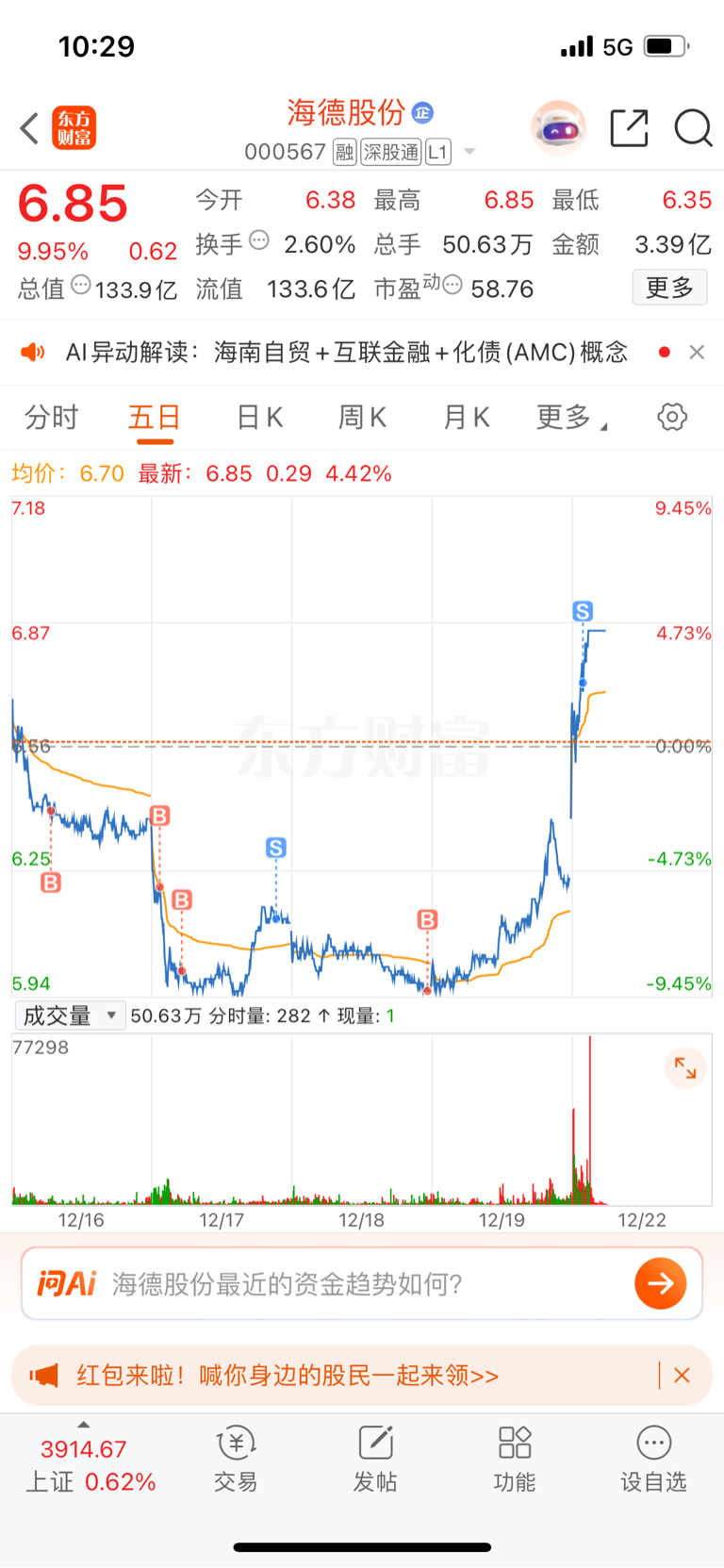 $海德股份(SZ000567)$ 酒菜们玩了卖飞了