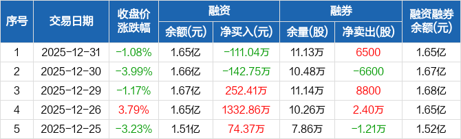 海德股份:融资净偿还111.04万元,融资余额1.65亿元(12-31)