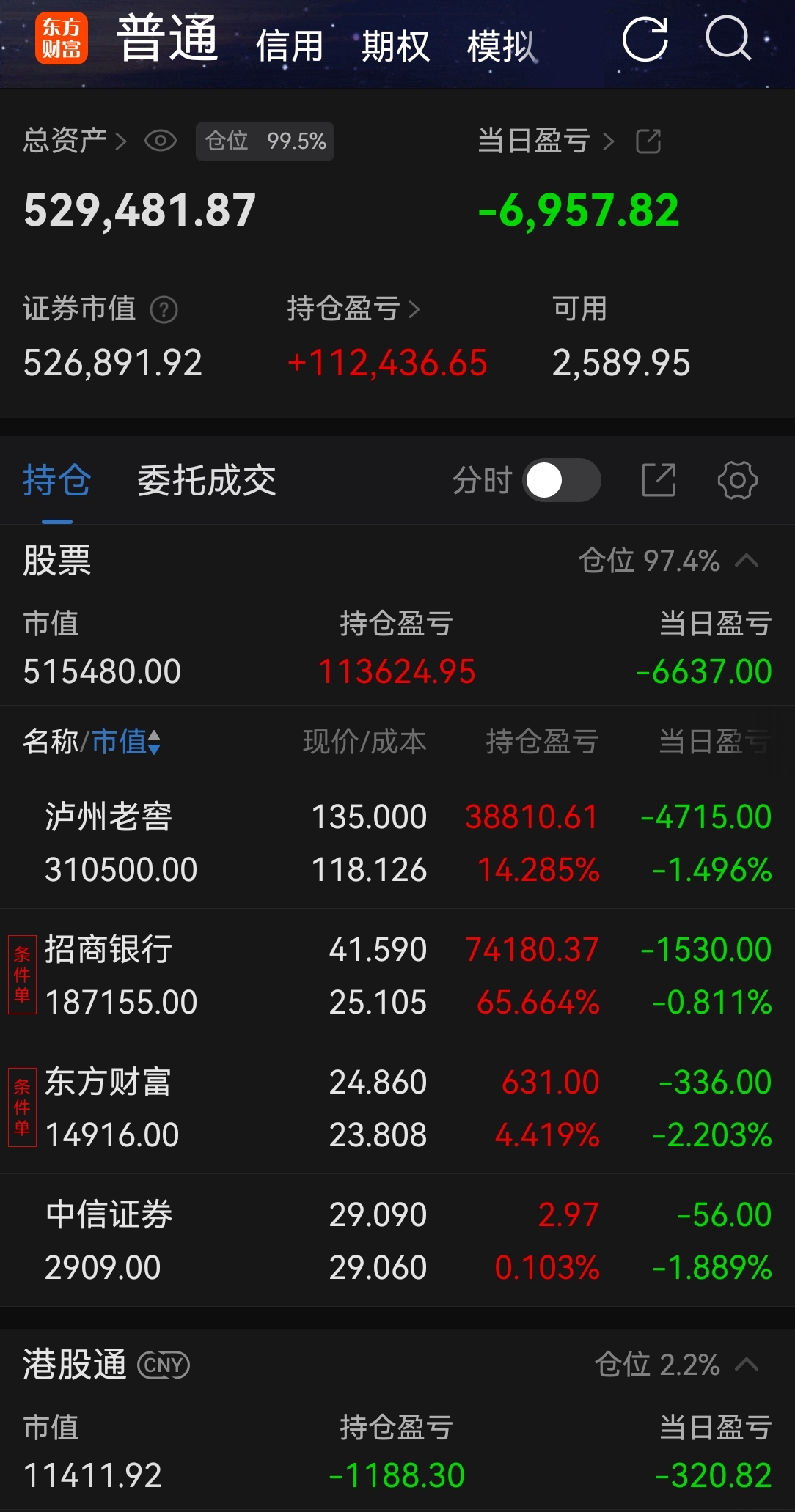 今天浮亏6957元,无操作。跌麻了,还怎么着呢,继续等吧。