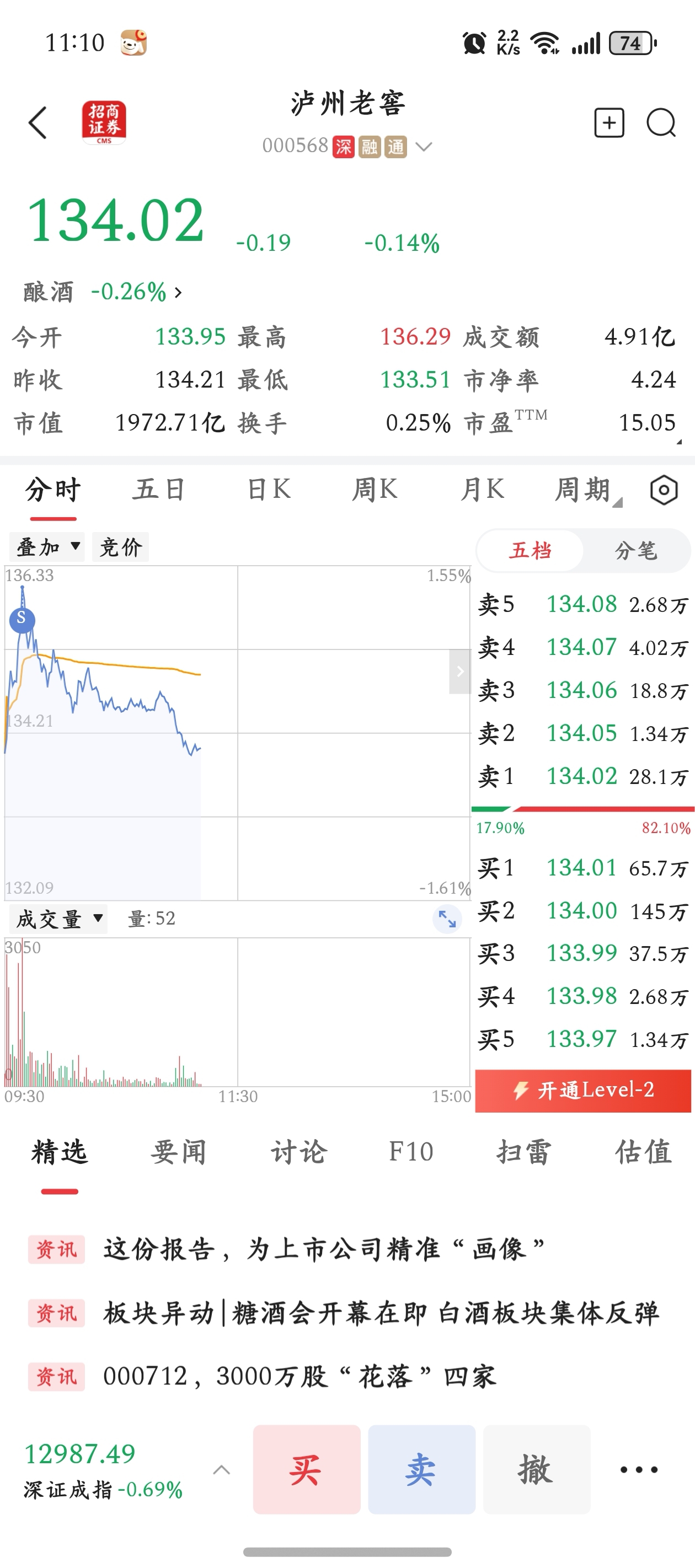 $泸州老窖(SZ000568)$ 全部卖了最高点