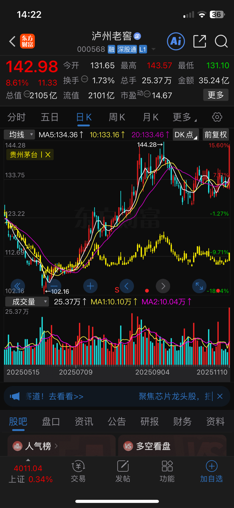 $泸州老窖(SZ000568)$ 吊打茅坑