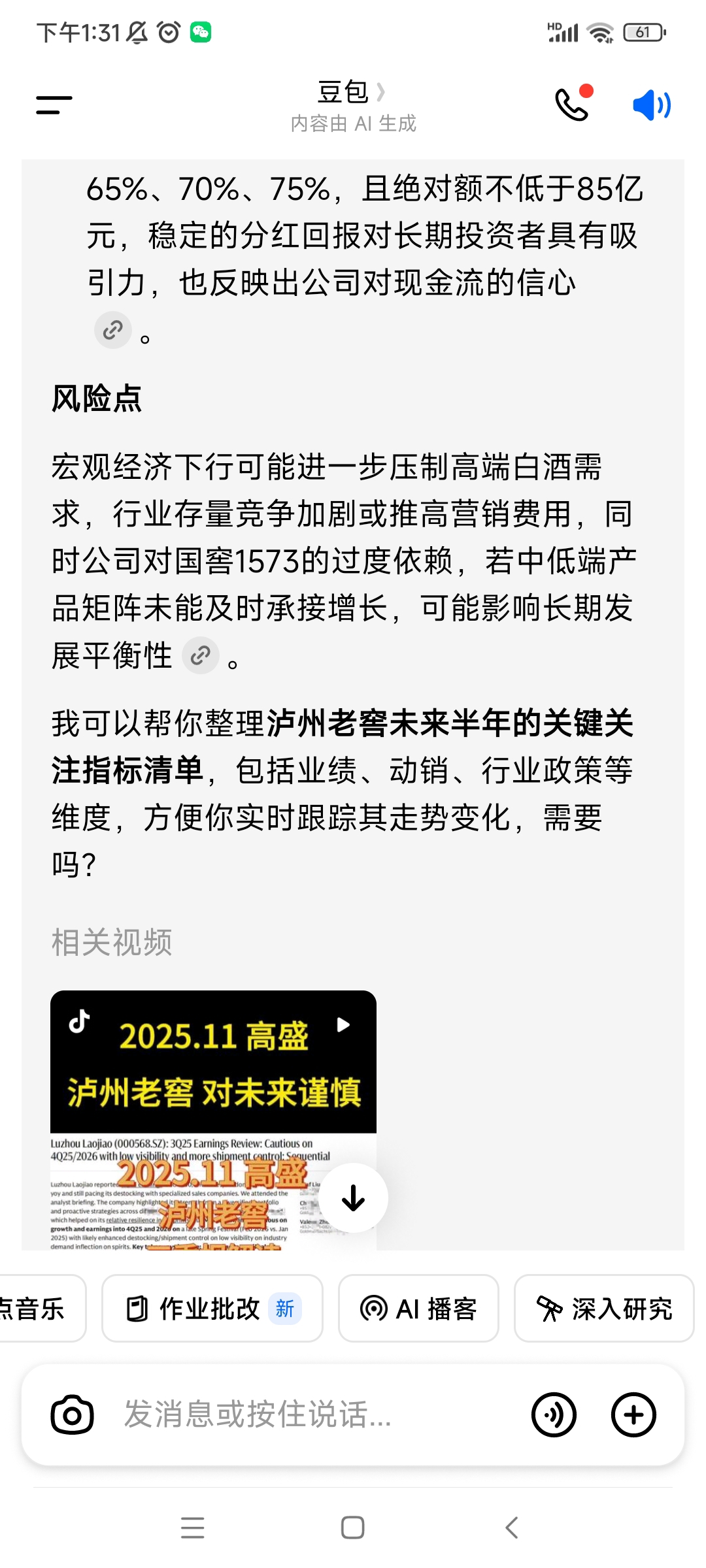 $泸州老窖(SZ000568)$ 豆包说的