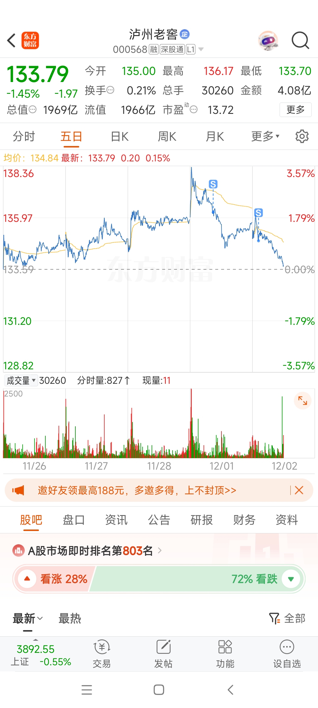 $泸州老窖(SZ000568)$ 亏了1200,2个点先跑