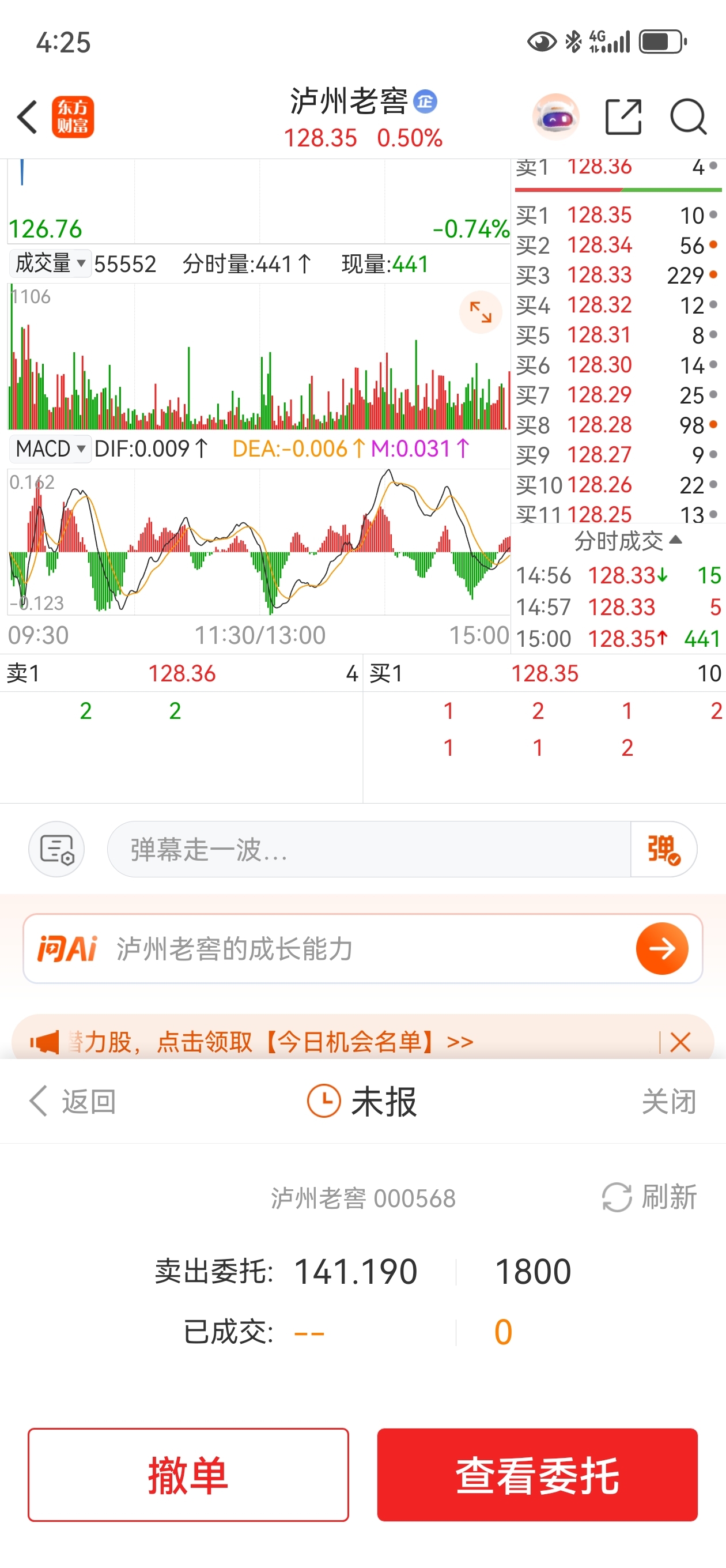 $泸州老窖(SZ000568)$ 明天给个机会出去