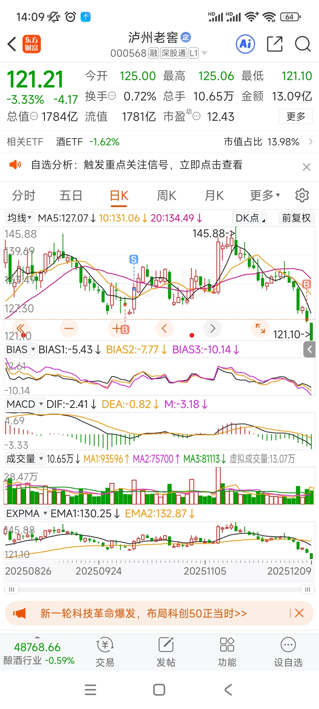 $泸州老窖(SZ000568)$ 遭老罪了,等企稳在买,我就买了一手